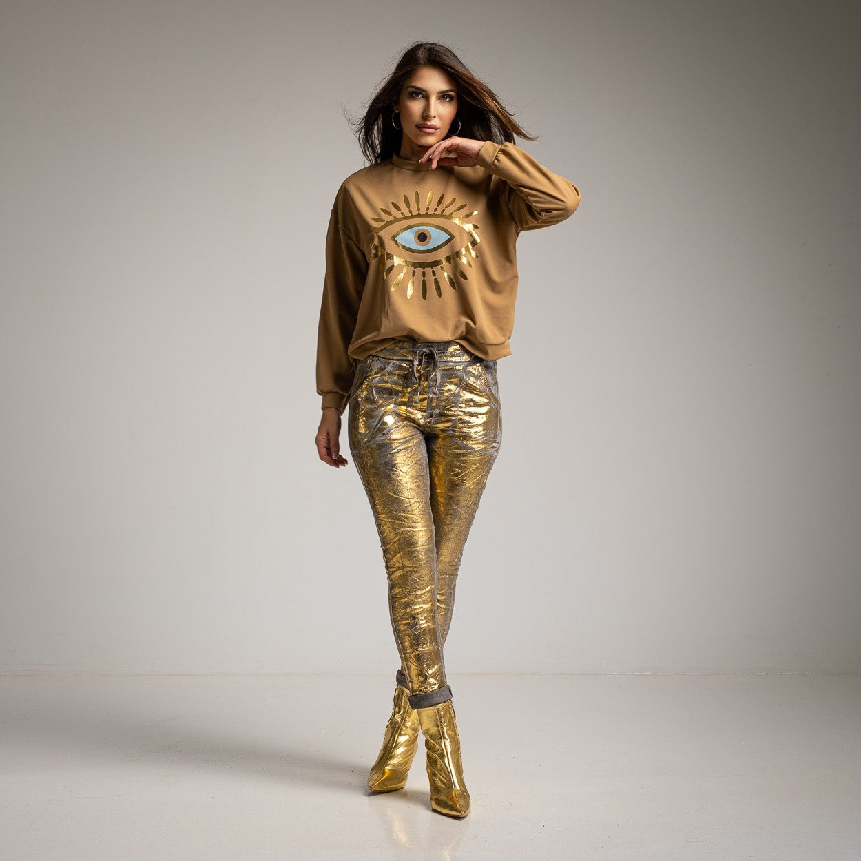 SUDADERA OJO GLITTER COLOR CAMEL